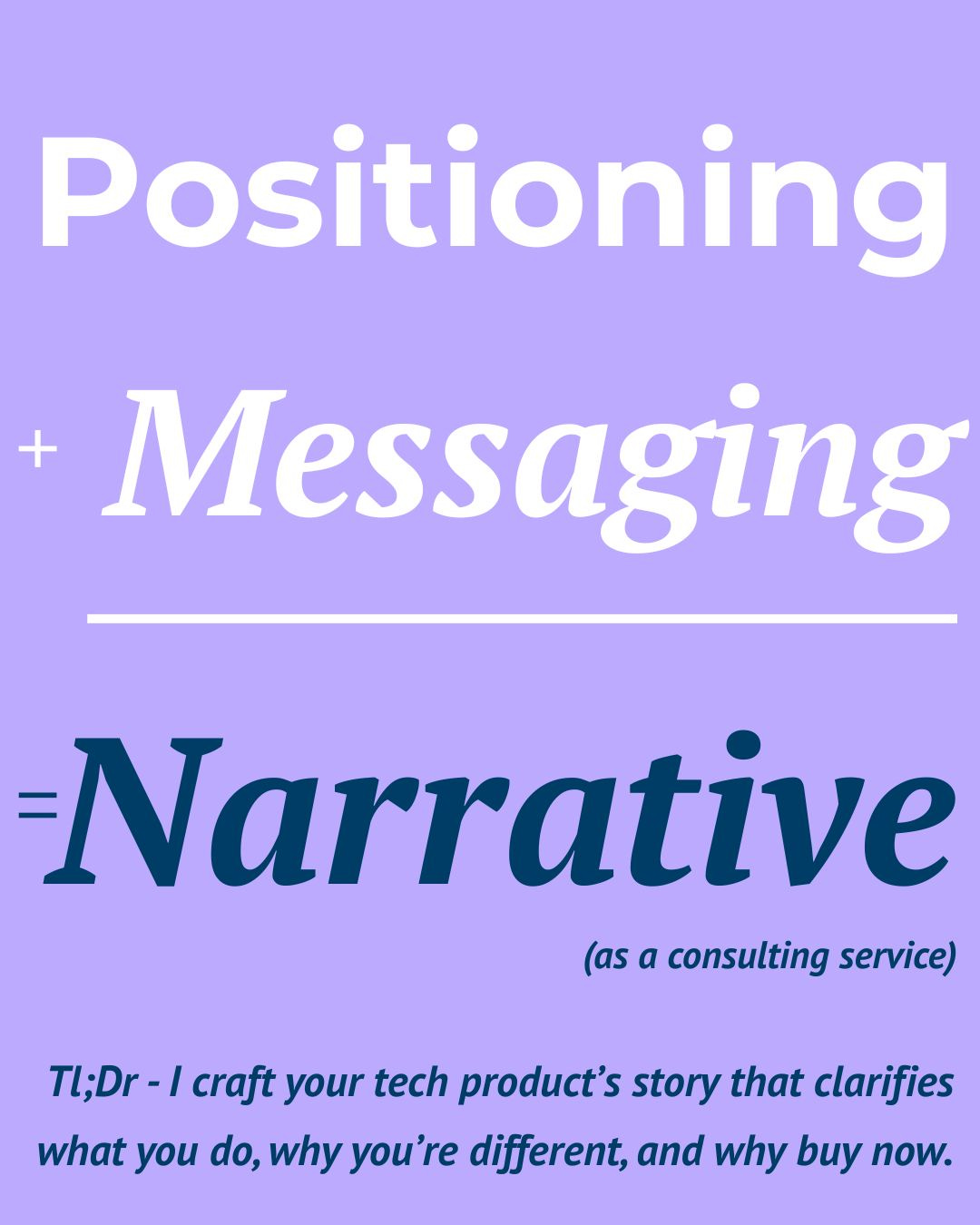 Tl;Dr - I’m repackaging my service as a Marketing Narrative - helping craft the product’s story your audience gets, remembers, shares.